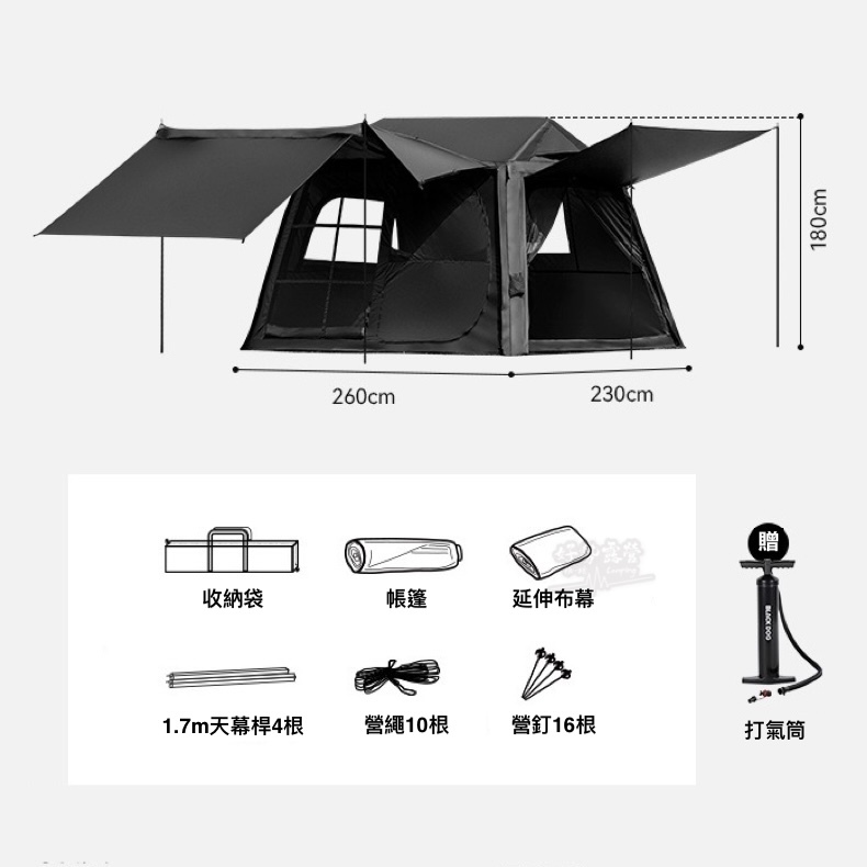 自動搭建:送自動充氣幫浦,免去繁瑣穿骨架,快速輕鬆充氣。
