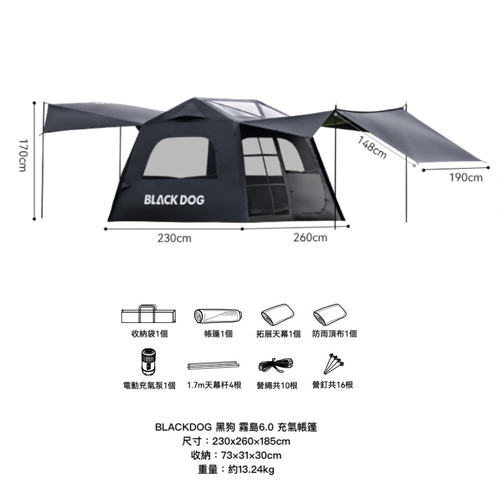 懶人最高境界:標配手動幫浦,但若搭配電動幫浦,2分鐘內就能看見帳篷成型。