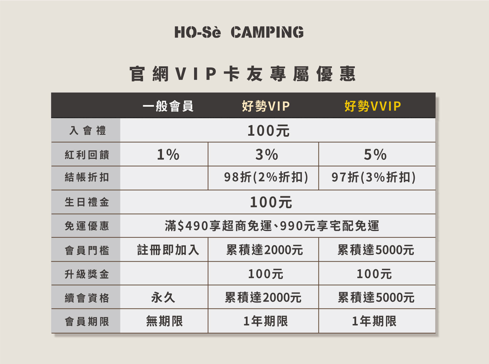 • 12個月內於好勢官網購物,累積有效消費金額達5000元即可升級為好勢大粉絲VVIP。