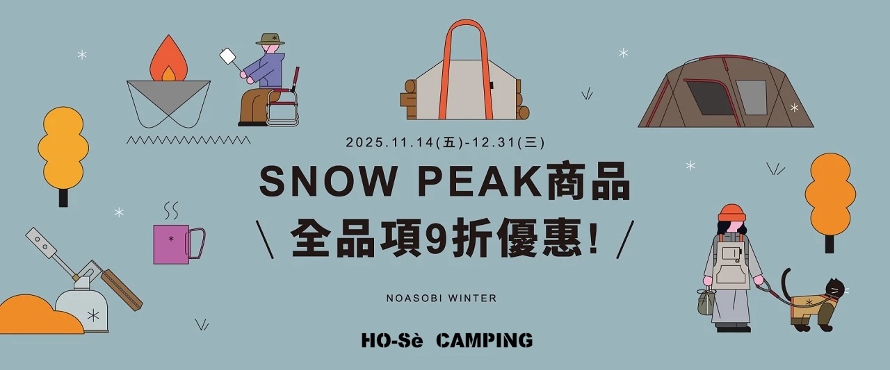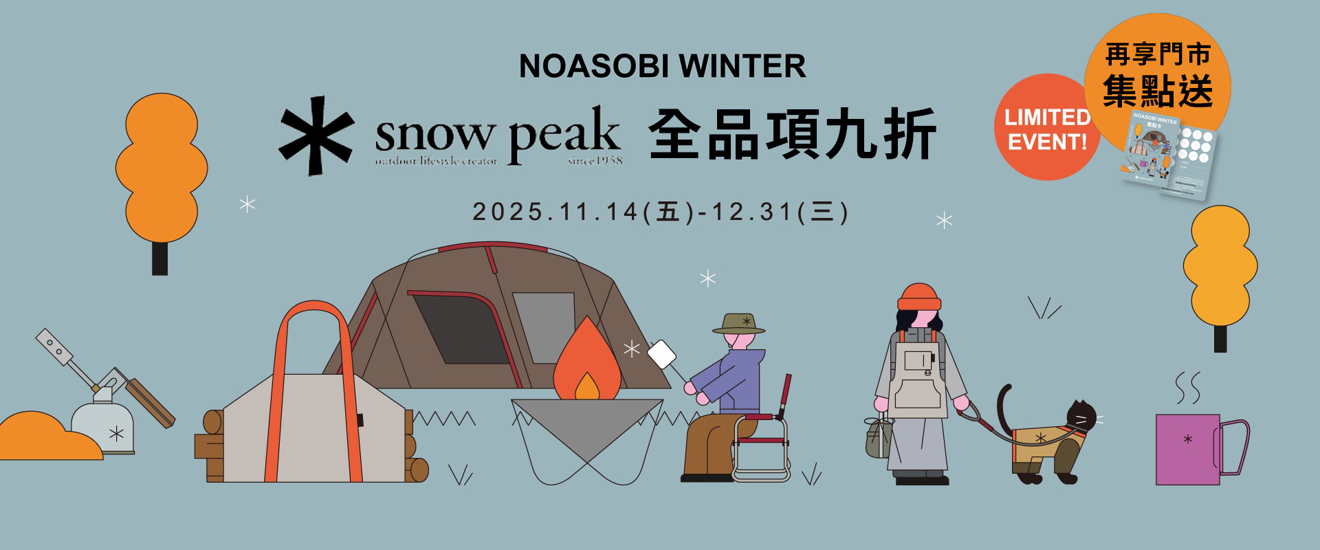 •2025.11.14 (五)~12.31(三)凡購買Snow Peak 商品,單筆消費滿3,000 元可集1點,滿6,000 元2點,依此類推。