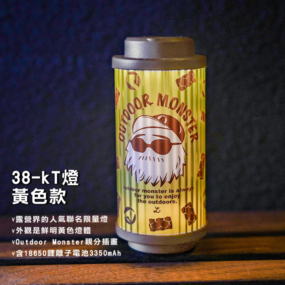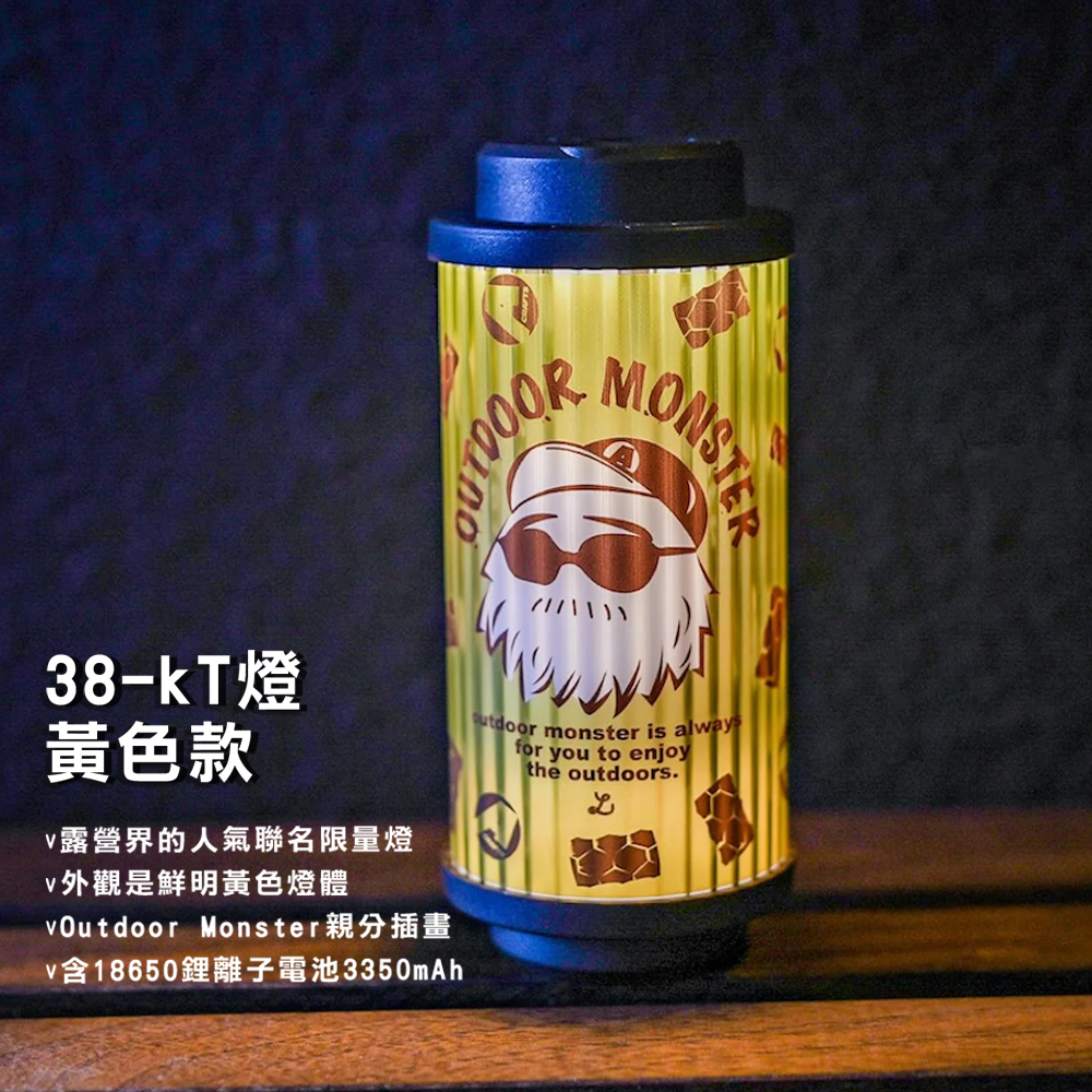外觀以 鮮明黃色燈體 搭配 Outdoor Monster 親分插畫,展現獨特個性。