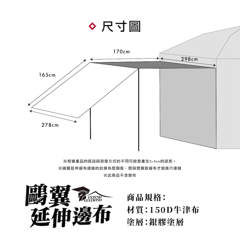 ******鶠翼延伸邊布連接的拉鍊為塑龬版需與塑鋼版邊布才能進行連接