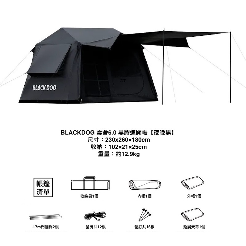 ◤輕鬆速搭◢ BLACKDOG 雲舍13/雲舍6.0 黑膠速開帳