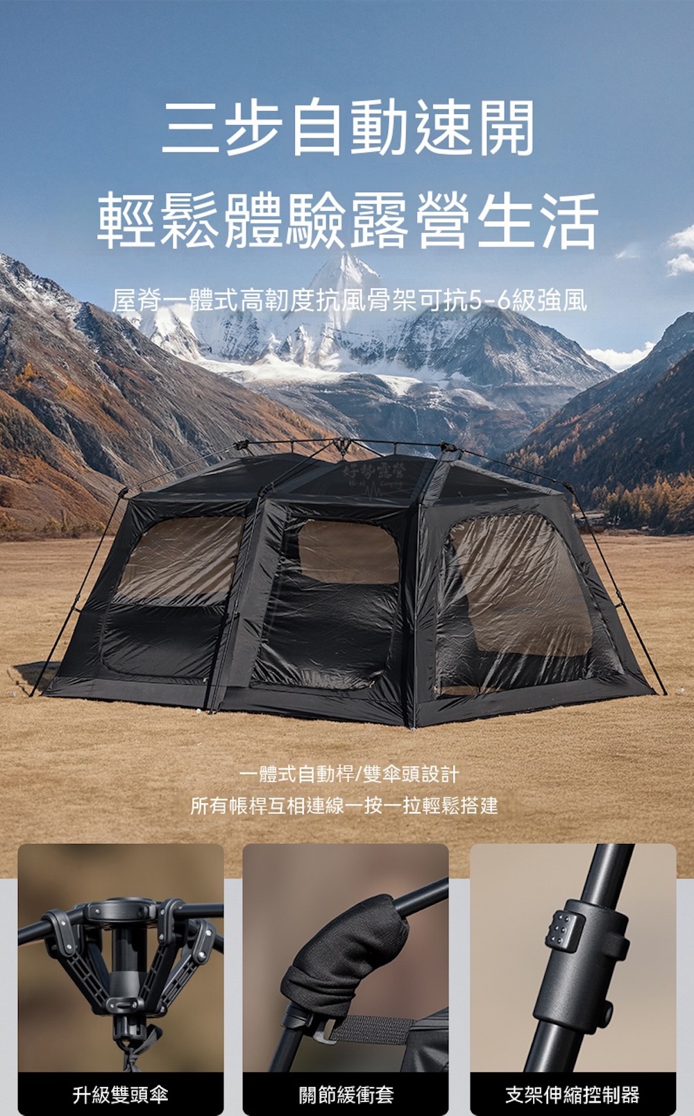 ✔ 三步極速搭設,一體式抗風骨架設計,自動速開省時省力