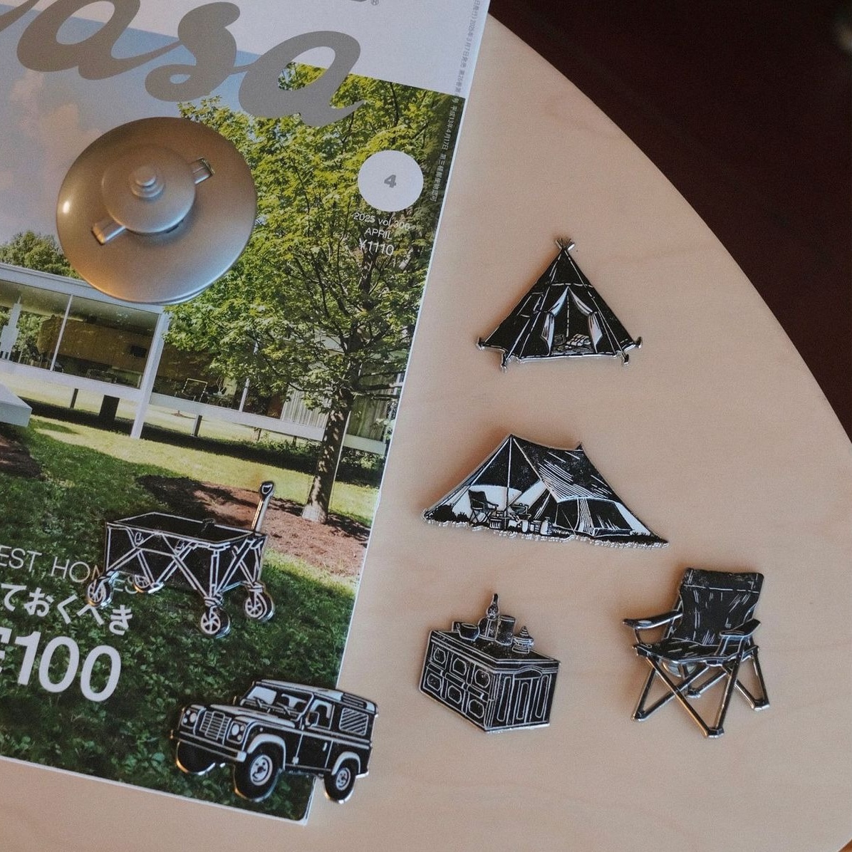 ✔ 以黑白版畫風格呈現經典露營元素,造型獨特且細緻
