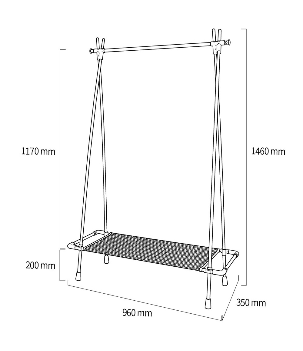最高可吊掛達117cm衣物,結構穩固,搭配下層收納避免衣物拖地或弄髒。