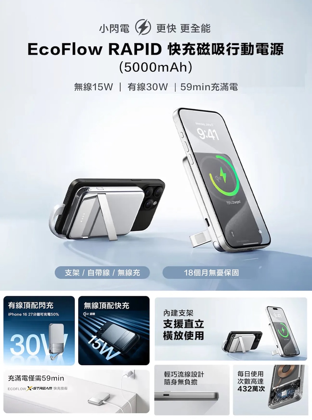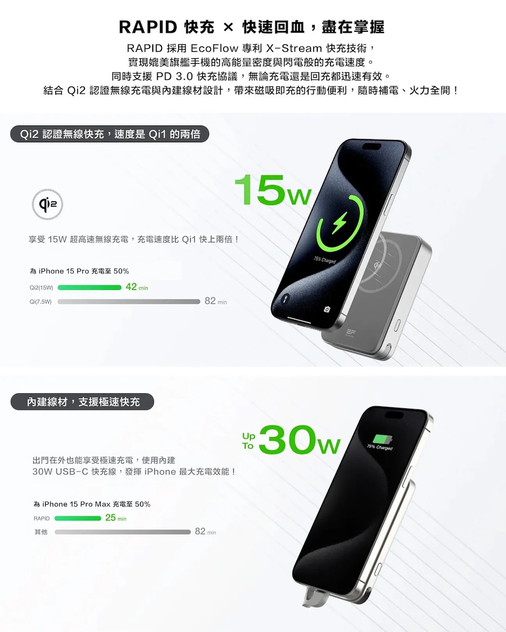 ▍30W 內建線材超快充:內建 30W 快充線,無需額外攜帶傳輸線,隨插即用,隨時享受磁吸便利與極速充電體驗。