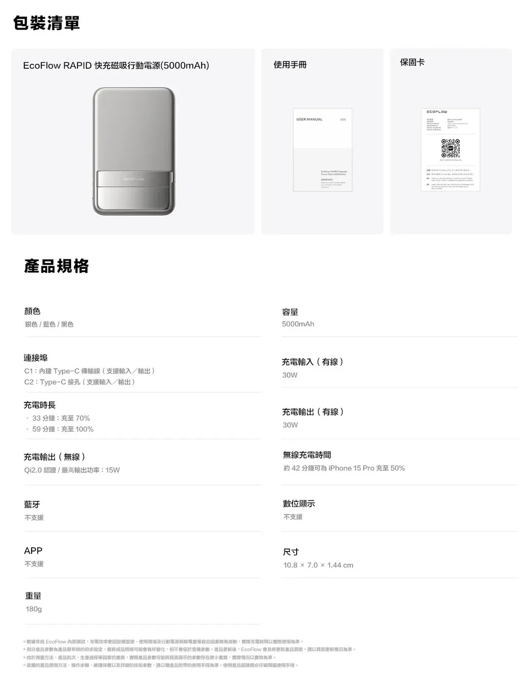 內容物:快充磁吸行動電源-10000mah、使用手冊、保固卡