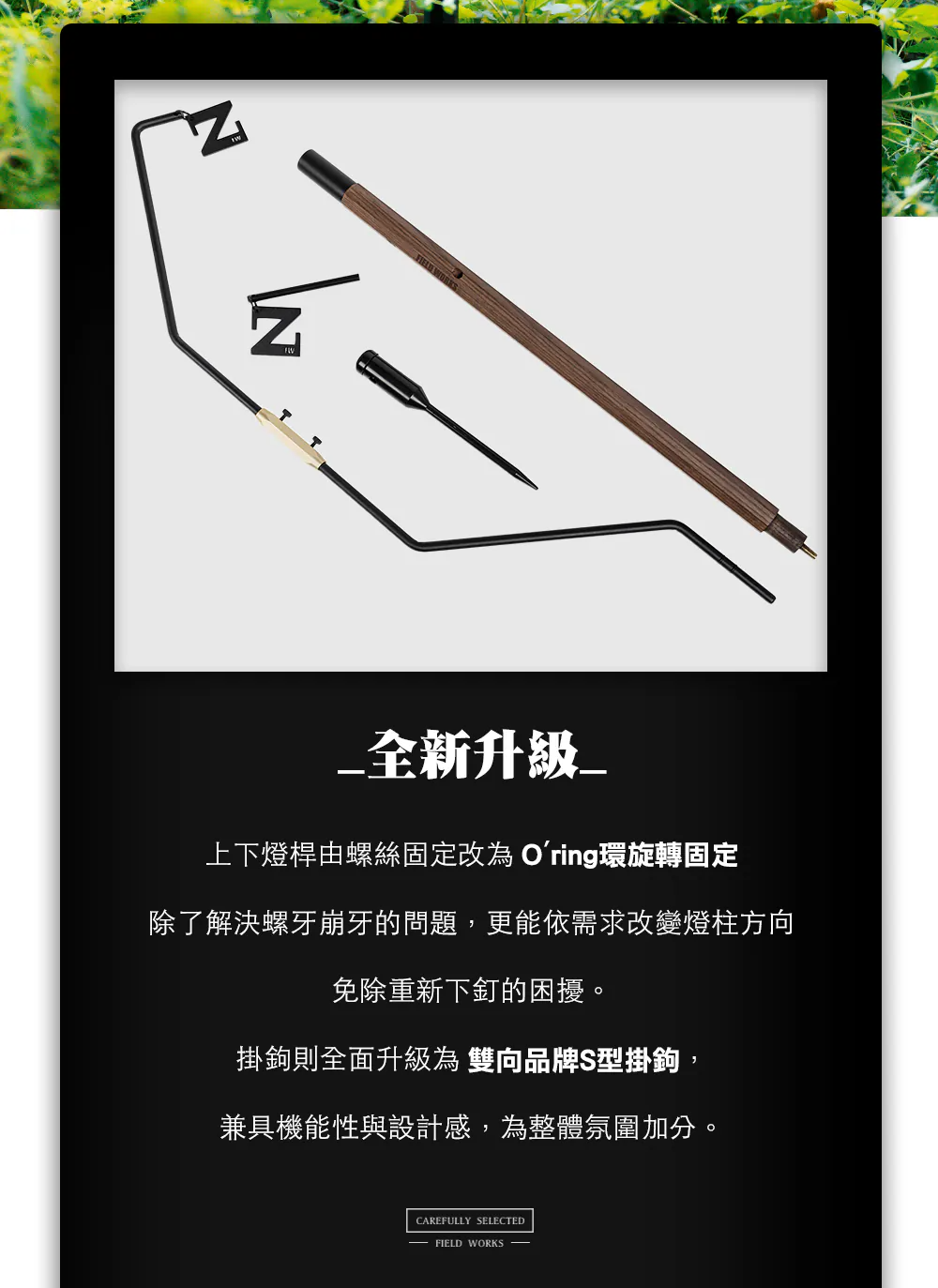➠燈桿改採O'ring固定,更簡單改變照明方向