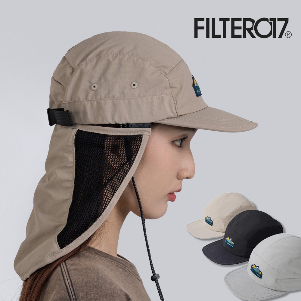 巧妙融合於帽型分割剪裁,便於收納搭配可快速拆卸的遮陽防曬布片和調節帽繩