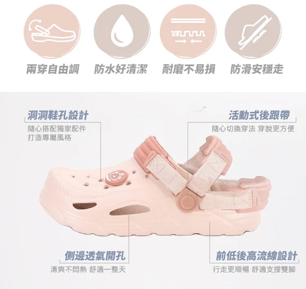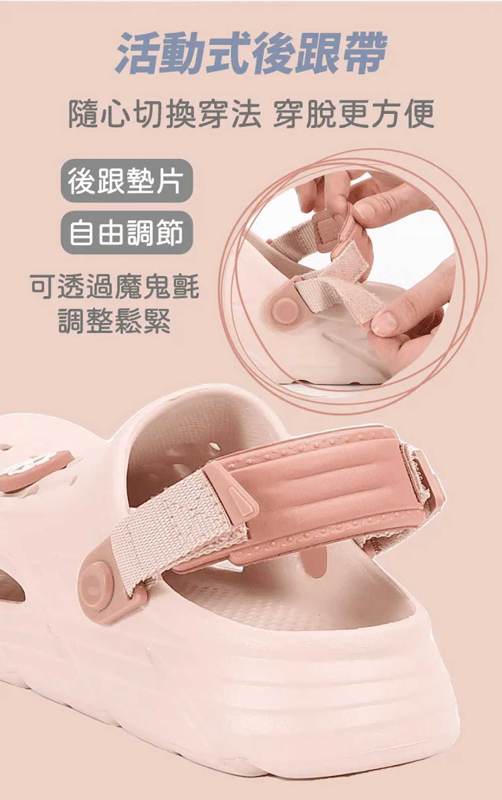 輕量耐磨、透氣不悶腳,搭配活動式後跟帶可兩穿切換