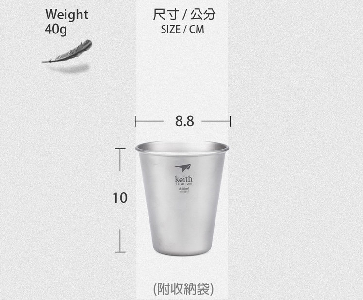 品名:Keith 鎧斯鈦單層啤酒鈦杯 350ml / Ti9001