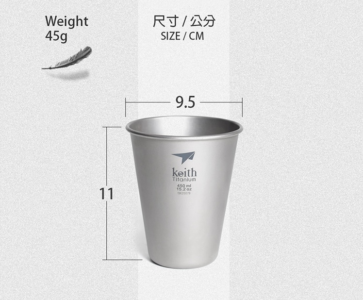 品名:Keith 鎧斯鈦單層啤酒鈦杯 450ml / Ti9002