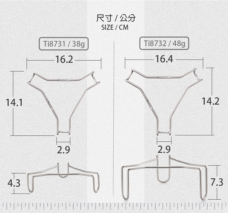 Ti8731尺寸:16.2 x 14.1 x 4.3cm / Ti8732:16.4 x 14.2 x 7.3cm