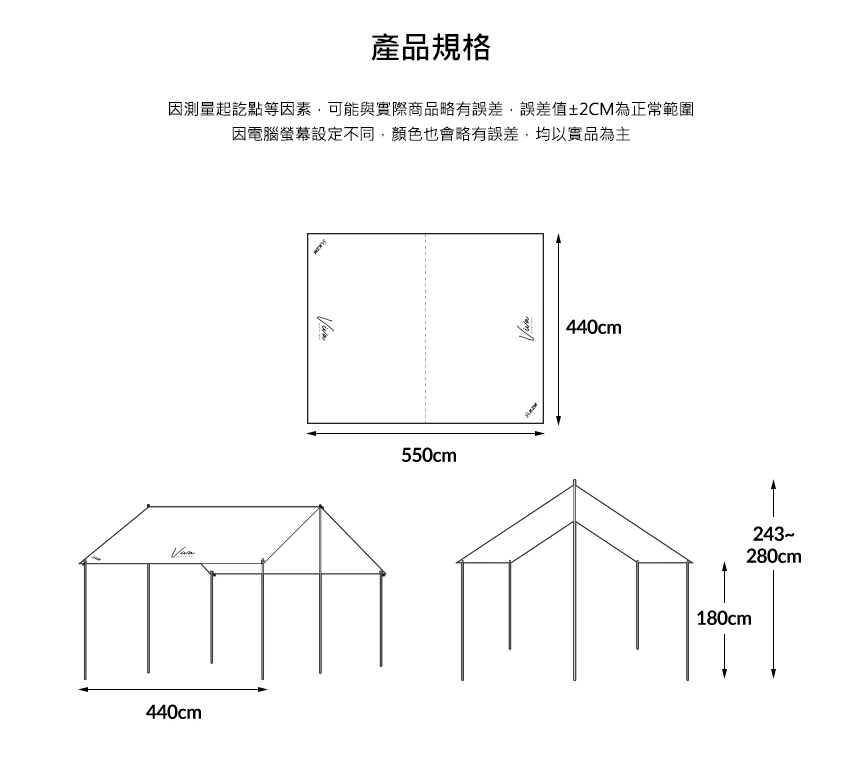 尺寸 : 展開時-550x440cm/收納時-79x21x21cm