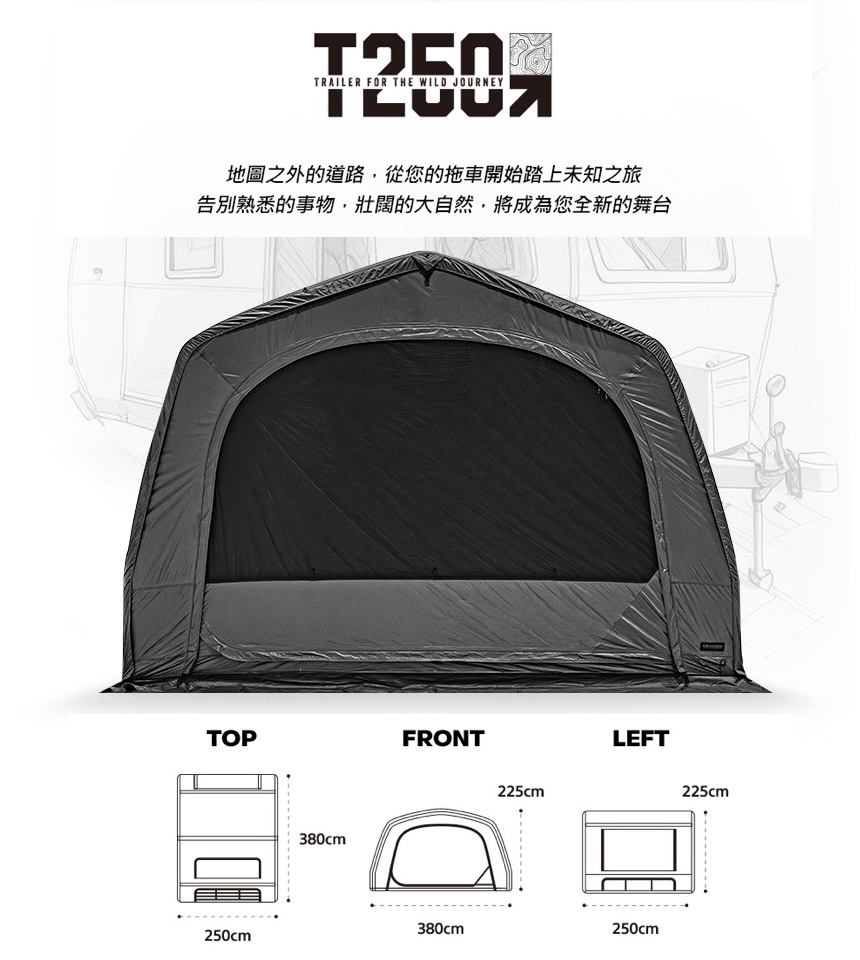 ◤搭配 T250充氣帳◢ KZM T250 延伸帳