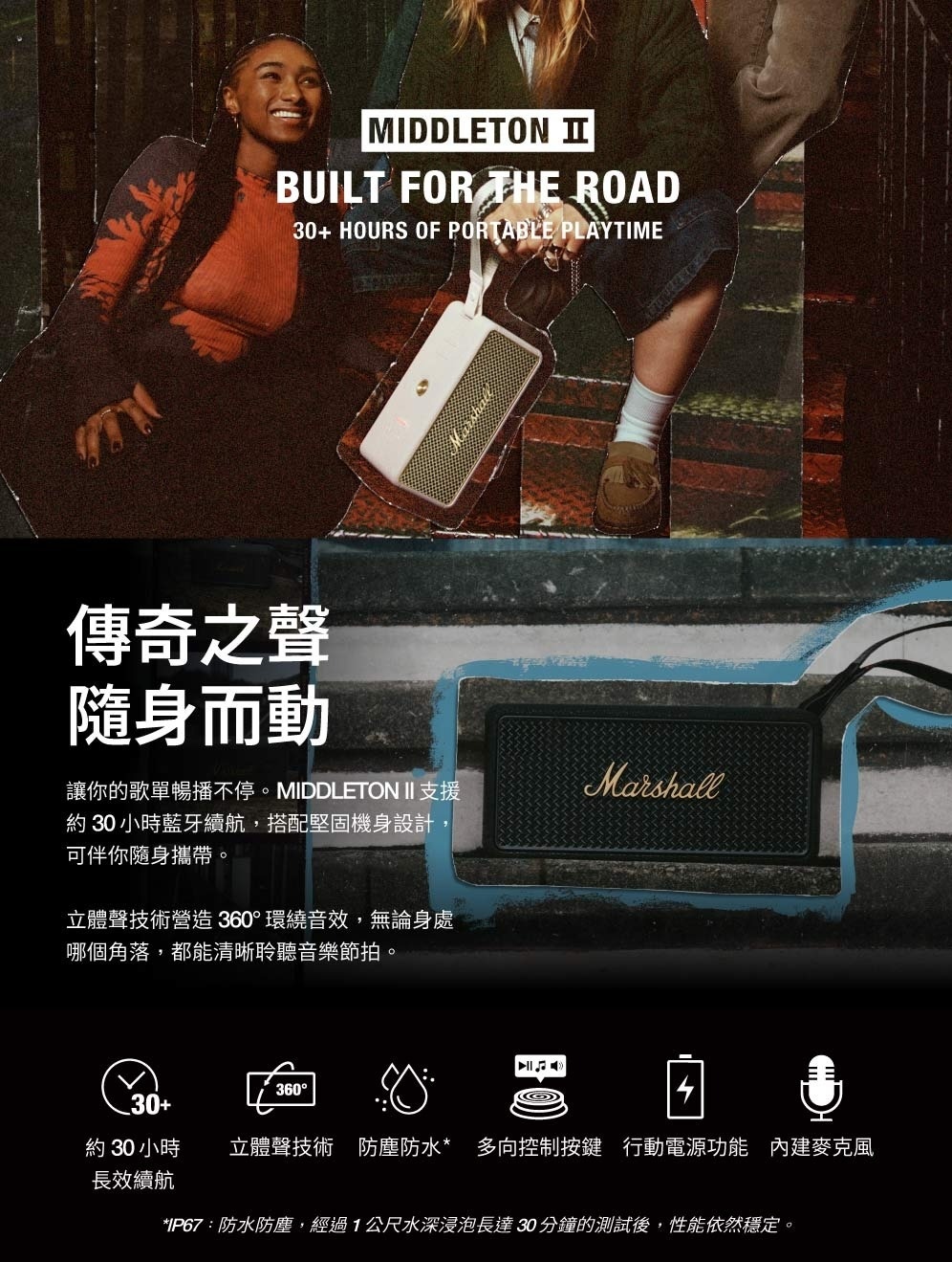 Middleton II 支援約 30 小時藍牙續航,搭配堅固機身設計,可伴你隨身攜帶
