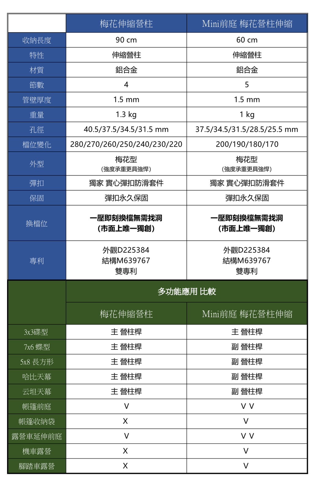 ✔Mini營柱五節設計,管徑分別:37.5mm/ 34.5mm / 31.5mm /28.5mm /25.5mm