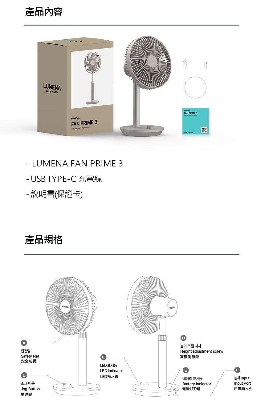 內容物:FAN PRIME3風扇、USB TYPE-C充電線、說明書(保證卡)
