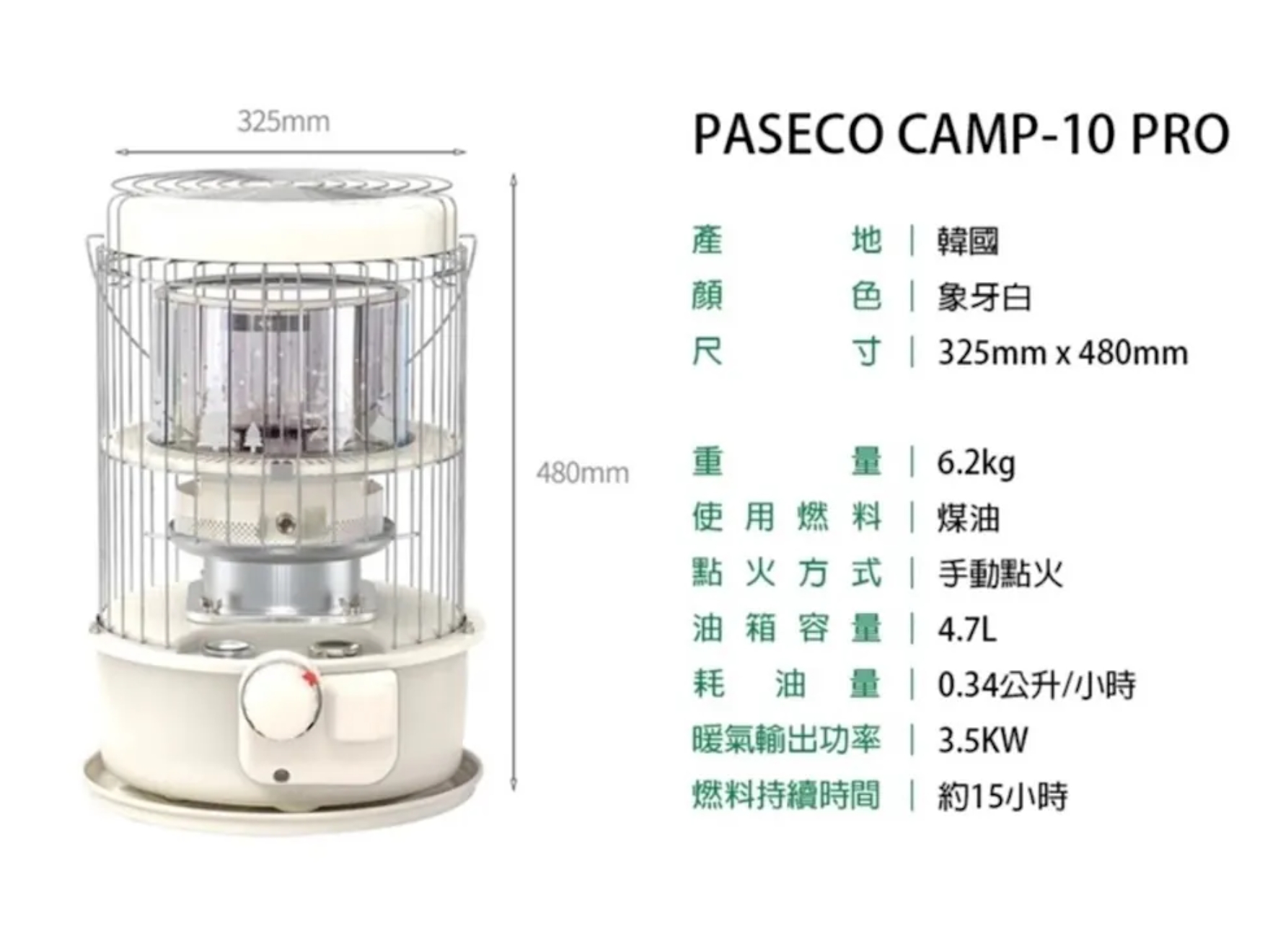 商品名稱:PASECO CAMP-10 pro 鈦離子煤油暖爐