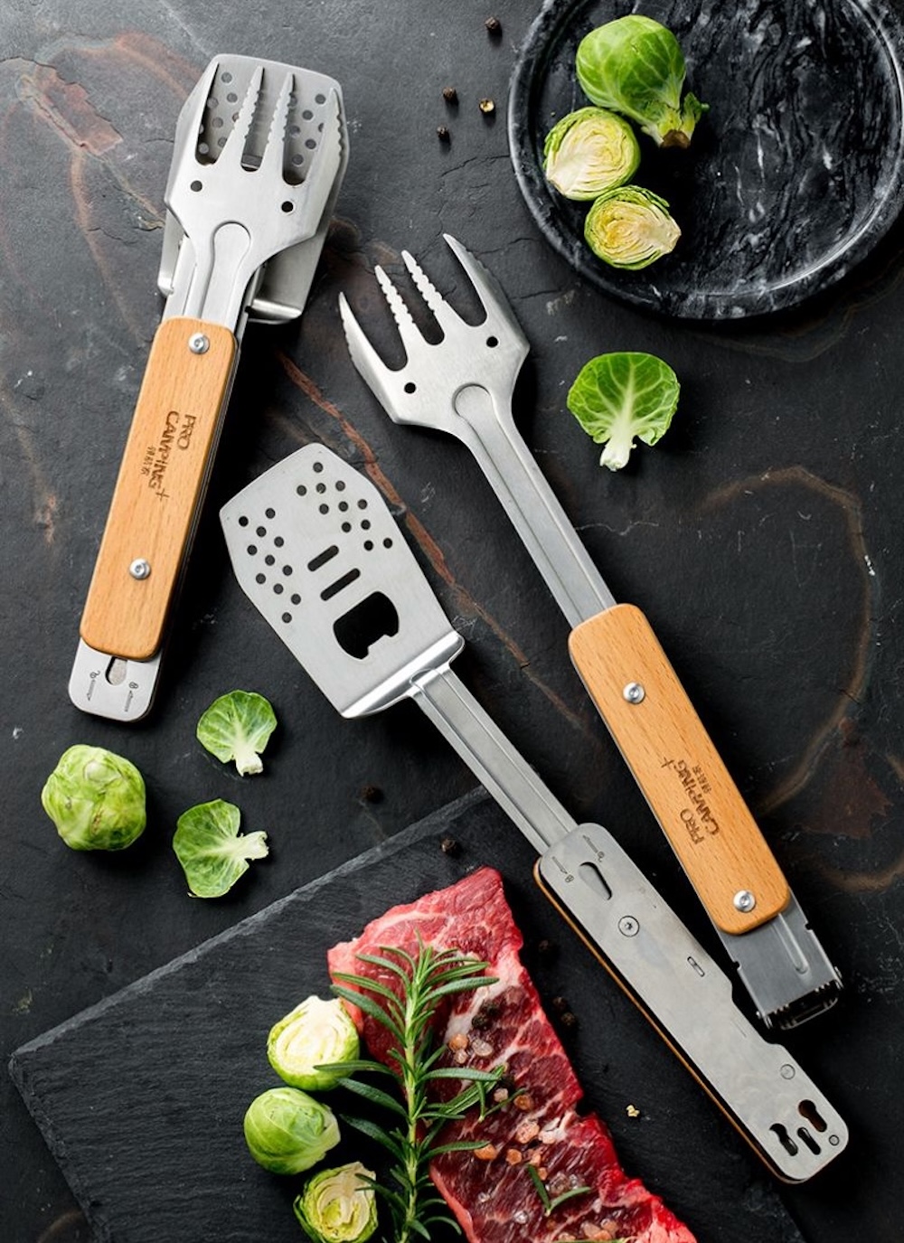 ✔ 四合一設計:烤叉 / 煎鏟 / 開瓶器 / 烤夾