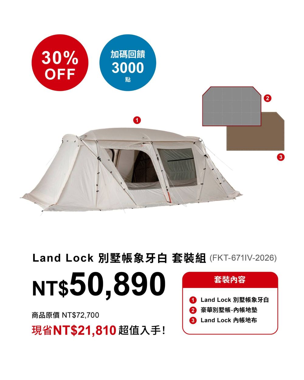 ➤全境解鎖|Land Lock 套裝組 7 折優惠直上夢想清單! 以最心動的價格,入主最穩固的戶外別墅。