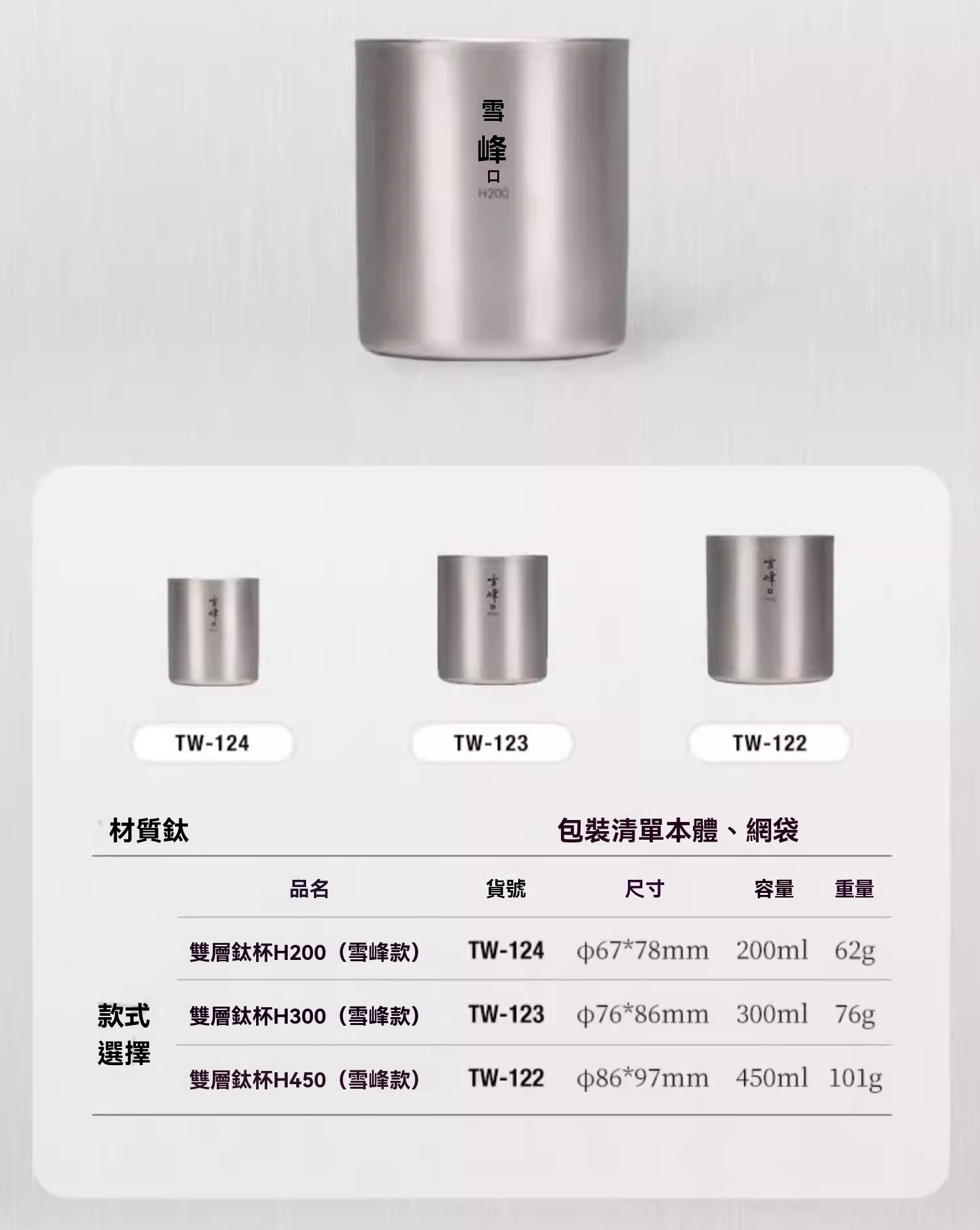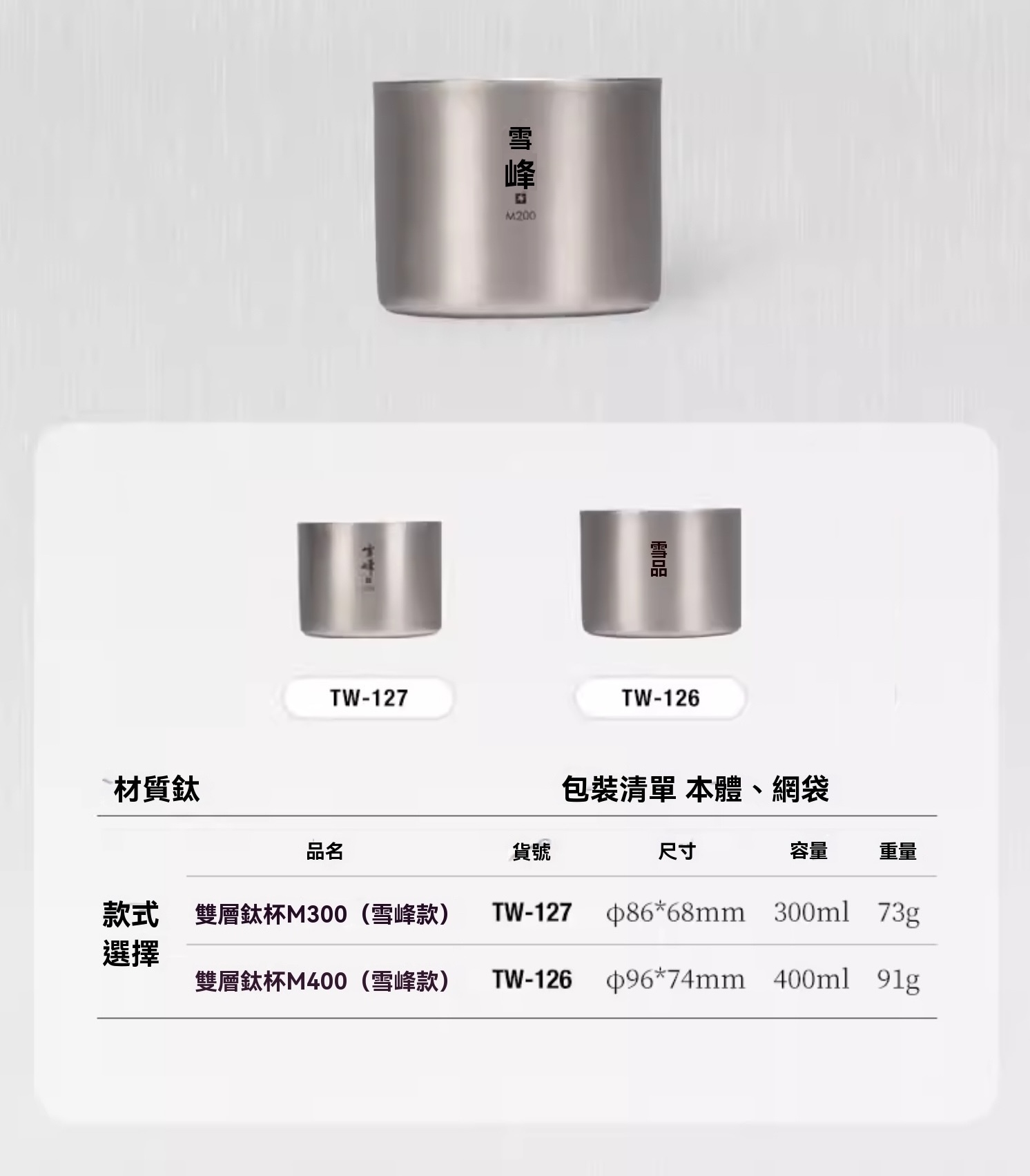 ◤雪峰經典◢ Snow Peak 雪峰鈦雙層杯-高型/中型