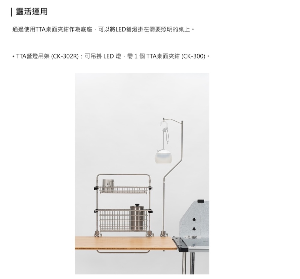 TTA營燈吊架能將LED營燈懸掛於桌上適當位置