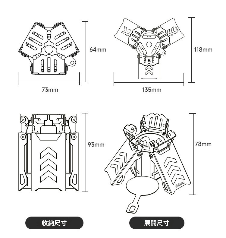🔥自帶折疊式爐架,一體化設計,輕量好攜帶