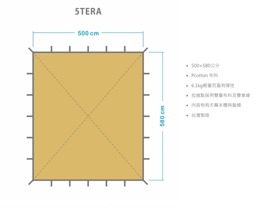 *拉線點採用雙層布料及雙車線,可使拉力平均,並提供良好的抗風力。