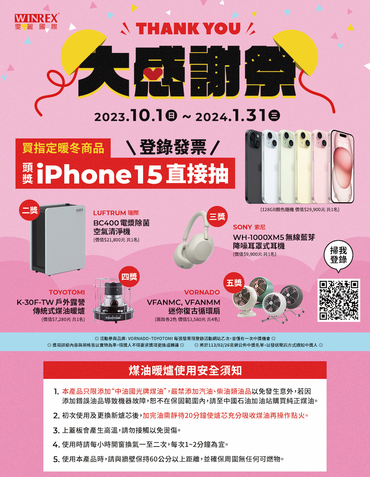 還可登錄抽IPHONE 15手機,除了頭獎還有更多抽獎好禮!
