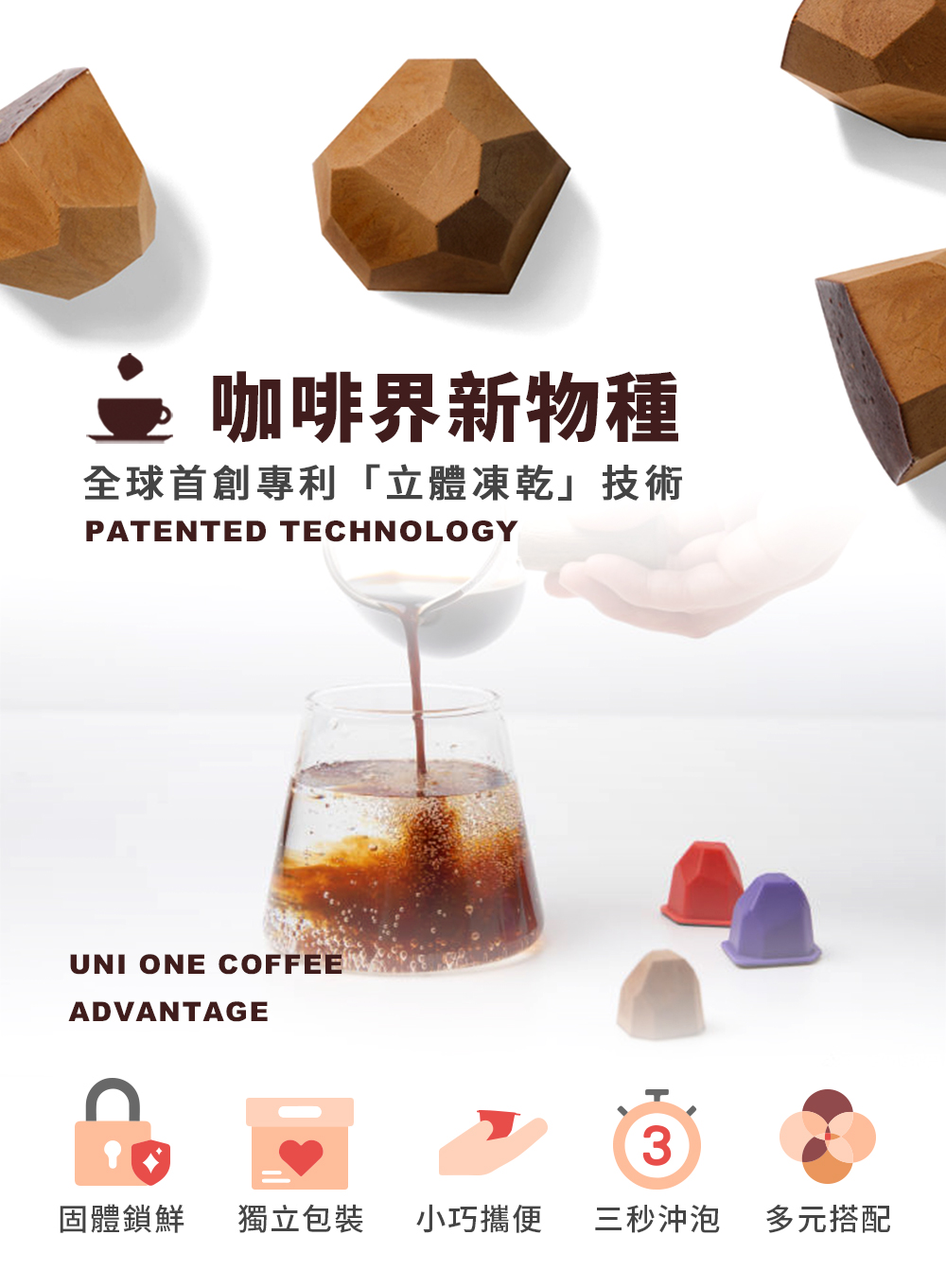 ✔立體凍乾咖啡塊、實現義式濃縮的常溫儲存,並賦予凍乾咖啡更長久的嚐鮮賞味期