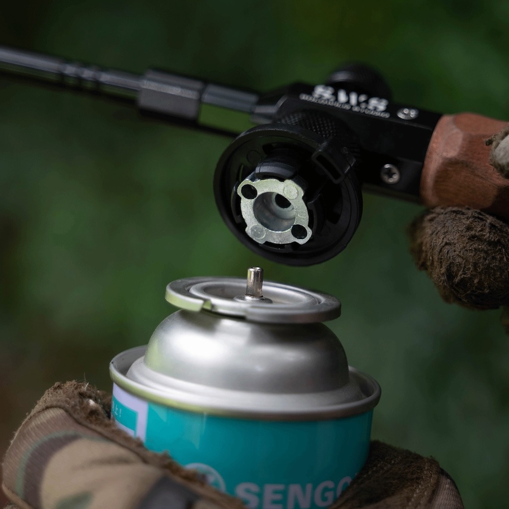 氣罐介面具備 45 度快速安裝結構,一秒即可穩固連接卡式瓦斯罐!