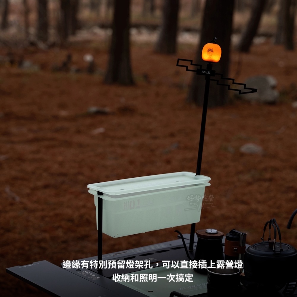✔ 邊緣有特別預留燈架孔,可以直接插上露營燈,收納和照明一次搞定