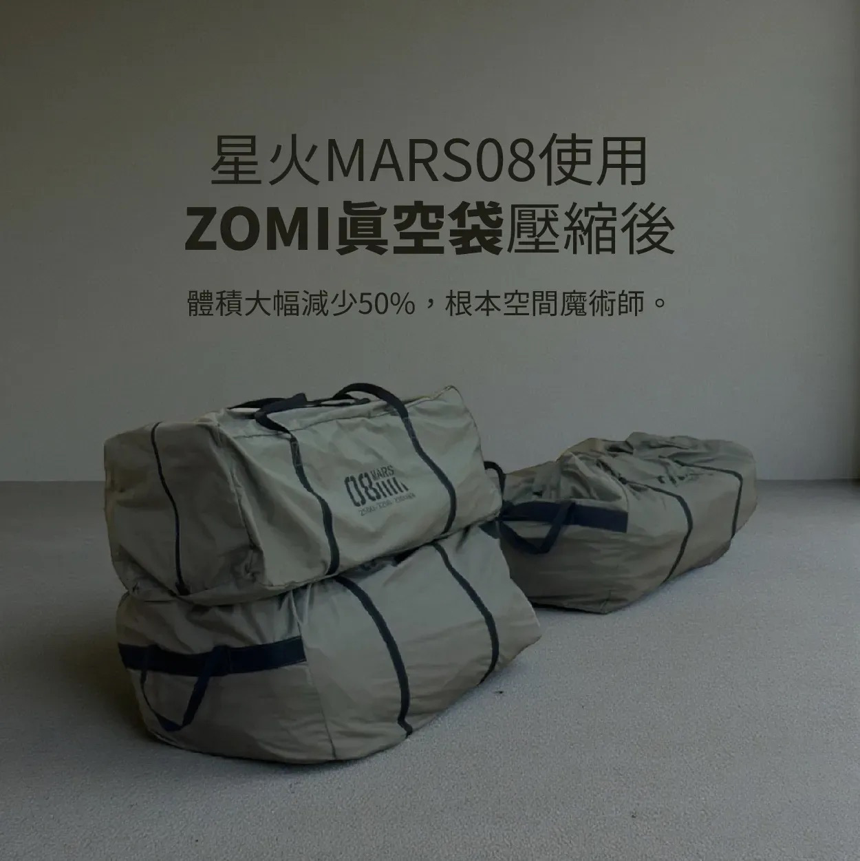 透過高效真空壓縮技術,能將原本蓬鬆的帳篷體積大幅壓縮 30% 以上